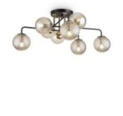 Минималистичный дизайн серии Navel добавит современным интерьерам динамичности. Графичные линии, отсутствие лишнего декора и прозрачные плафоны обеспечивают светильникам визуальную легкость: их можно использовать как в просторных студиях, так и в маленьких помещениях. Металлическая арматура сочетает черный цвет и благородный оттенок латуни – дуэт, актуальный для большинства цветовых решений интерьера. Округлые плафоны-сферы, выполненные из янтарного стекла, имеют трендовую фактурную поверхность. Такое решение создает легкую игру света и теней, добавляет дизайну изюминку. Компактные потолочные люстры на 6 и 8 плафонов подойдут для комнат с невысокими потолками, а стильное бра идеально завершит световой ансамбль. Серия хорошо адаптируется в интерьерах, выполненных в стиле лофт, сканди, минимализм, mid-century modern.
