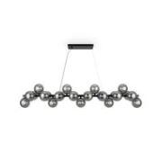 Металлическая арматура в четырех цветах: матовый черный, хром, золото, латунь. Плафоны — выдувное стекло. Цвета — дымчатый, янтарный, коньячный. Дизайн с имитацией молекулярной структуры. Высота подвесных светильников регулируется тросом. Лампа с цоколем G9.