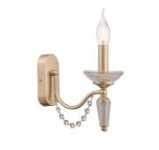 Металлическая арматура в бронзовом оттенке. Плафон-сфера – прозрачное выдувное стекло. Декор – подвесные цепочки внутри плафона. Скрытый источник света.