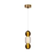 Арматура — металл, цвет — латунь. Плафон — выдувное стекло с компактным матовым рассеивателем внутри. Игра света по внешнему стеклянному элементу. Эстетика конструктивизма в дизайне. LED-источник света. Цветовая температура 3000К.